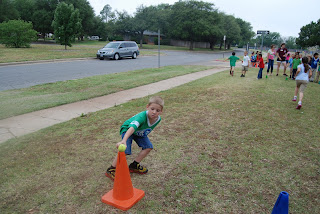 Today was Field Day...A hot, miserable day that teacher's don't necessarily look forward to...But crazy enough, it was very overcast and nice and cool...I even got the chill bumps a few times...We could have done without the crazy wind, but it was a gorgeous morning for playing outside for hours...I love being at school so I can help out with things like this...The teacher's are responsible for their own classes so having a few extra parents there are always helpful...